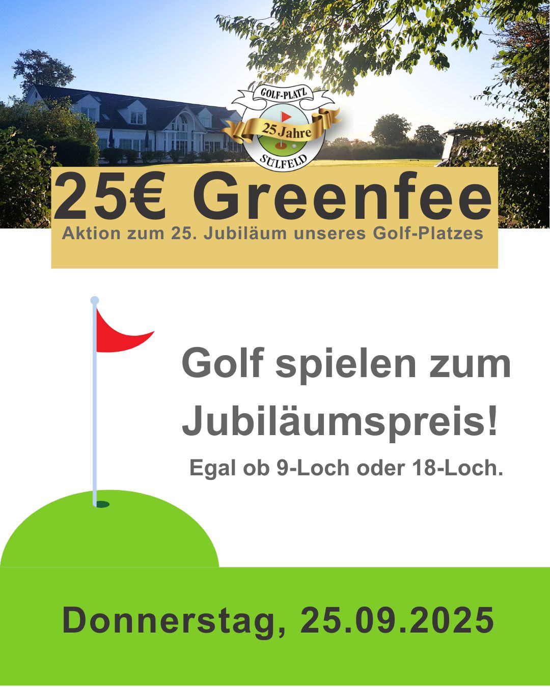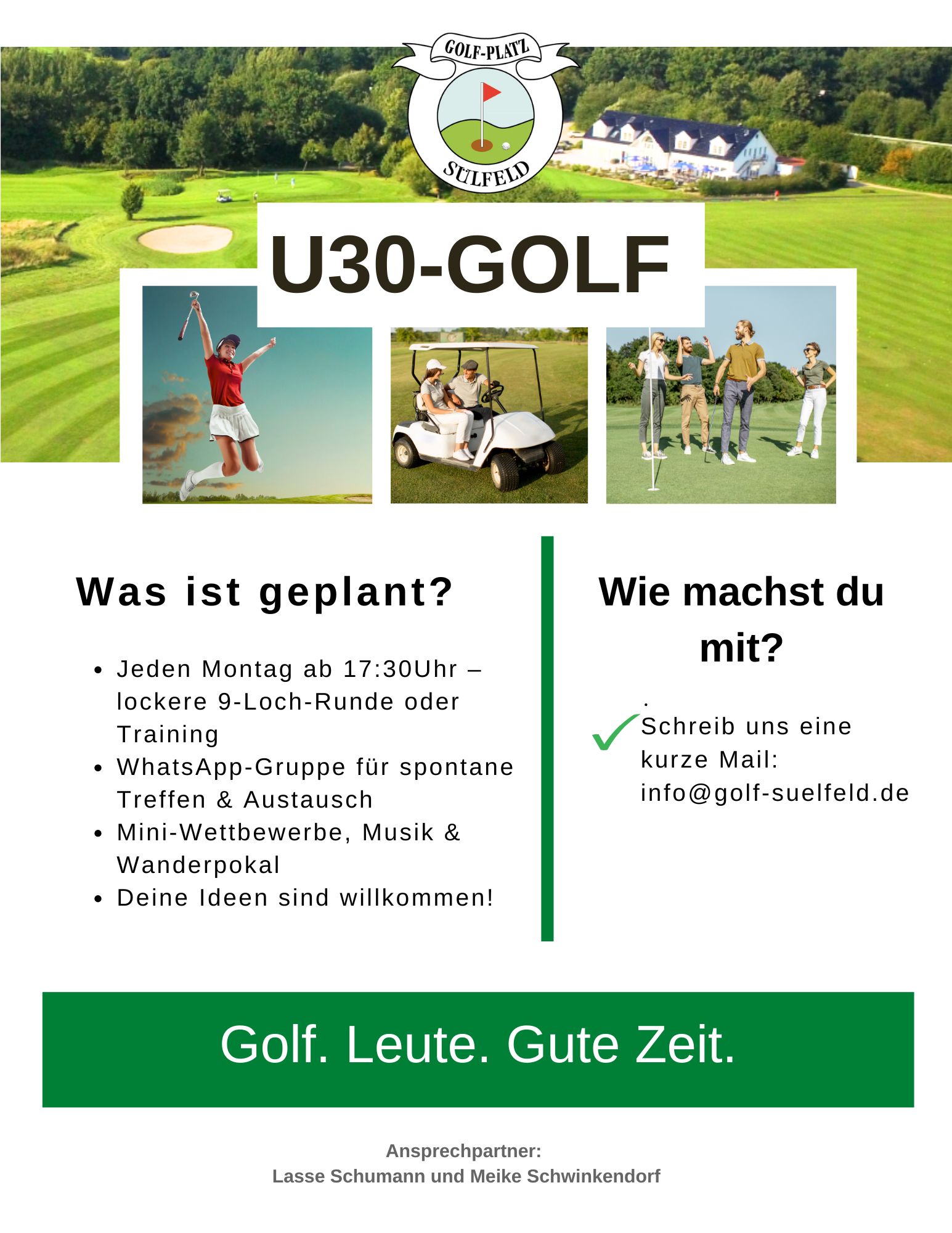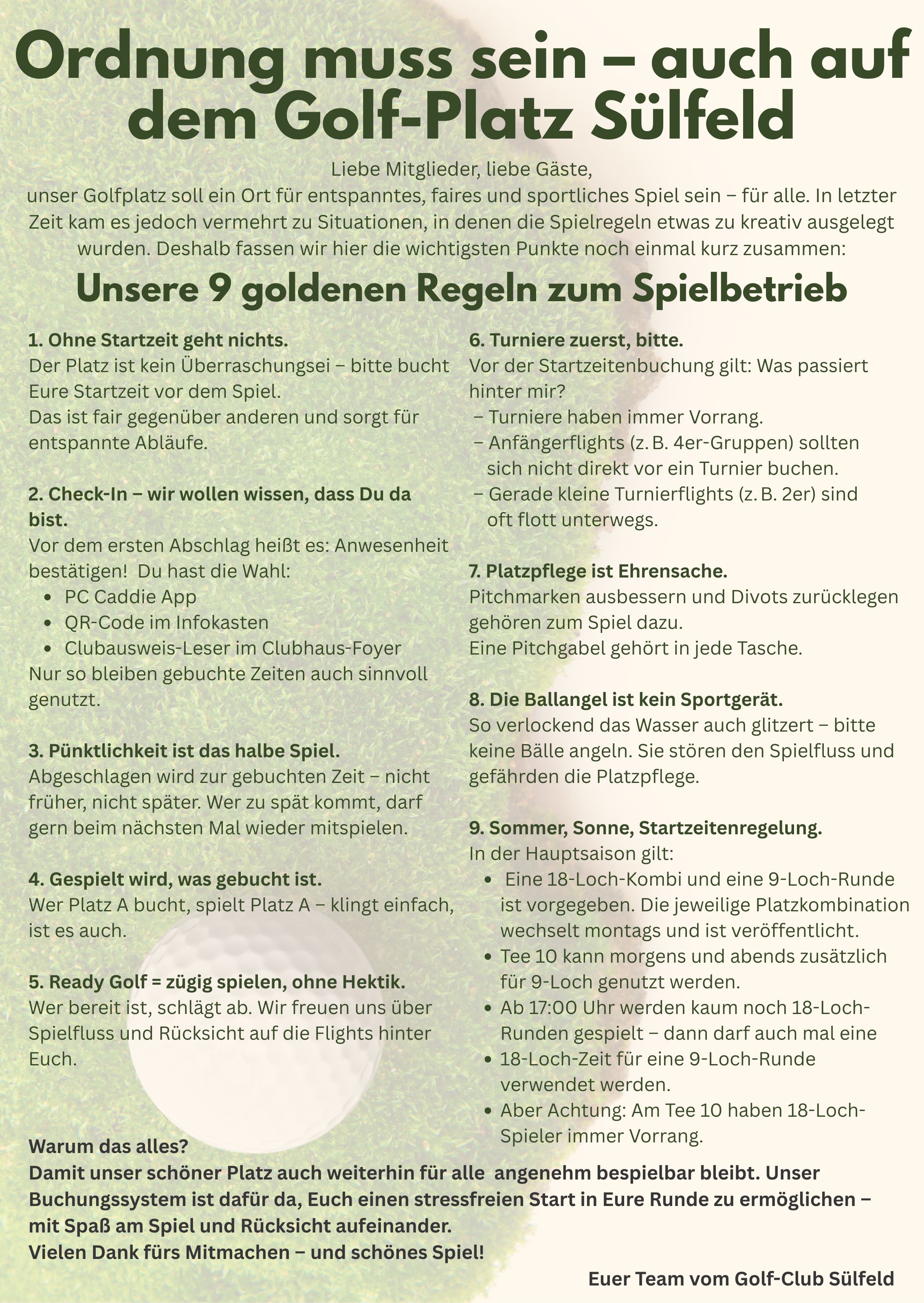 Als Mitglied im GC Sülfeld e.V. könnt ihr übrigens auch von unseren 9-Loch Runden profitieren. Organisiert von Mitgliedern für Mitglieder. Hier könnt ihr neue Spielpartner finden oder auch was dazu lernen.