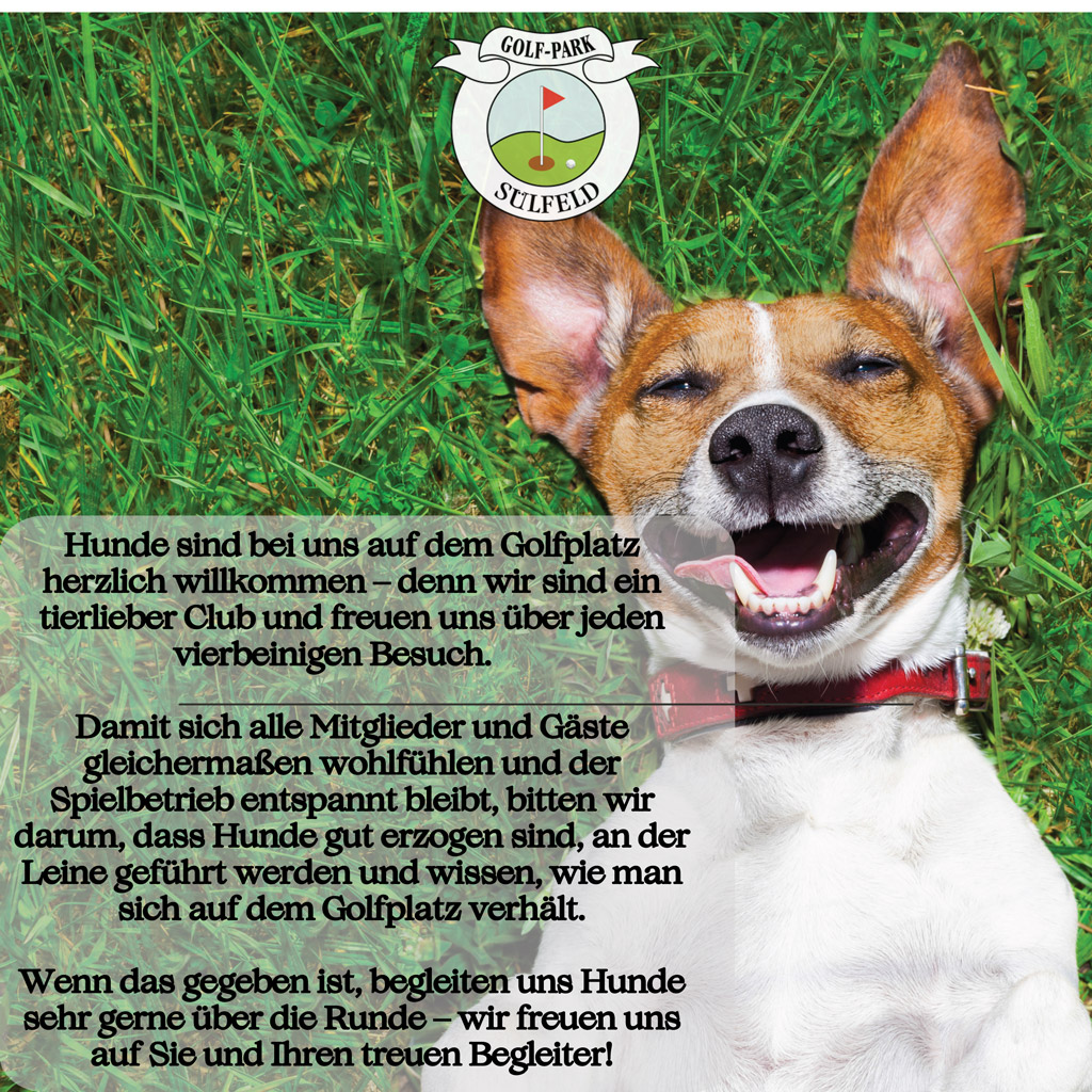 Bei uns sind gut erzogene Vierbeiner herzlich willkommen. Einfach an der Leine halten und für den "Notfall" ein Tütchen am Mann halten. Bringen Sie Ihren besten Vierbeiner-Freund gerne mit und genießen Sie eine tolle Golfrunde gemeinsam.